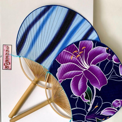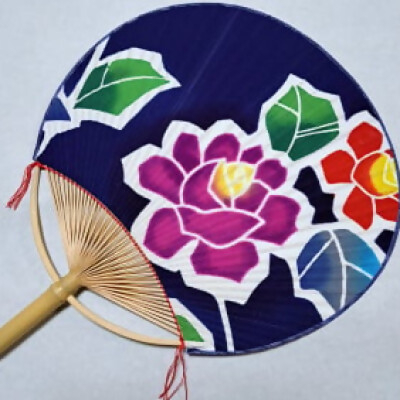 - 日本三大うちわ「房州うちわ」大型2本組セット ゆかた地(花柄おまかせ)