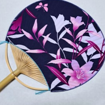 日本三大うちわ「房州うちわ」大型2本組セット ゆかた地(花柄おまかせ)