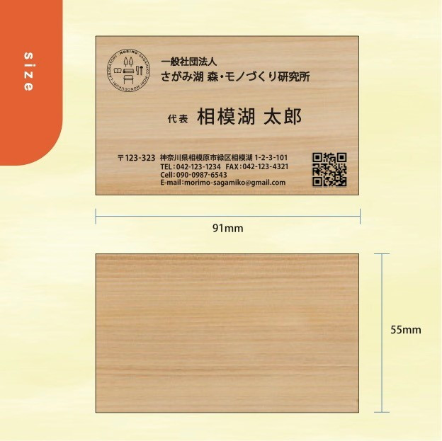 【モノクロ片面】名刺「kino-kami」(さがみはら津久井産材:ヒノキ)
