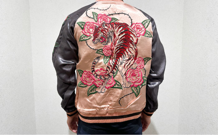 - スカジャン 薔薇とレッドタイガー 刺繍 サイズはS・M・L・XL・XXL 服 ジャケット じゃけっと スカジャン すかじゃん おしゃれ かっこいい トラ 虎 バラ 薔薇 アメリカン ヴィンテージ 刺繍 神奈川県 横須賀市 神奈川 横須賀【有限会社エムシーハウス】 [AKAP013]