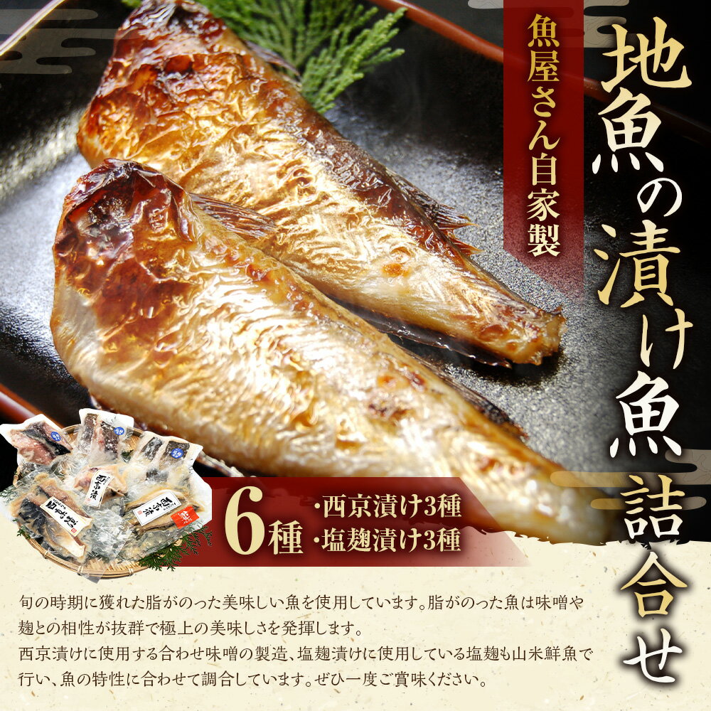 【ふるさと納税】魚屋さん自家製 地魚の漬け魚 6種詰合せ(西京漬けと塩麹漬け)魚 切り身 西京漬 塩麹漬け セット 真鱈 鱈 穴子 あなご アナゴ ヒラマサ 真フグ ふぐ フグ ハマチ ハタハタ 簡単調理 国産 無添加 安心安全 兵庫県 新温泉町 送料無料