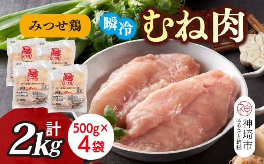 - みつせ鶏瞬冷むね肉500g×4袋【みつせ鶏 鶏肉 鶏むね肉 ブランド肉 低カロリー サラダチキン 冷凍保存 ふるさと納税】(H115102)