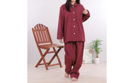 - 【カラー:レッド サイズ:L】フランネル 無地 レディス パジャマ