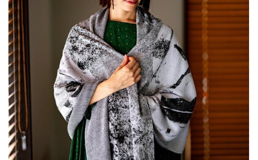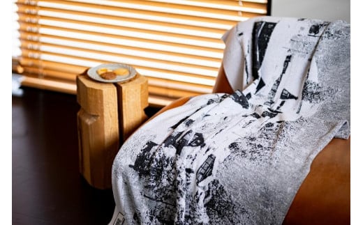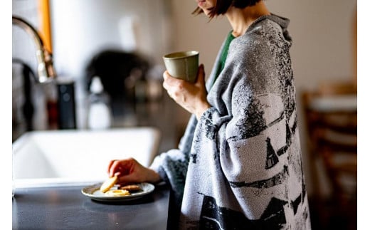 - 五箇山合掌造りの雪景色をジャガード編みで表現したニットブランケット【約190cm×約70cm】