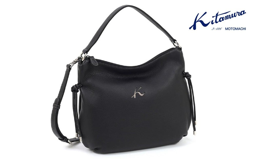- 2wayハンドバッグ (Y-1328) ブラック/サンドベージュステッチ〈キタムラ〉