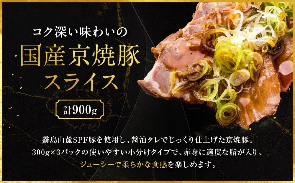 【エスイー】国産京焼豚スライス300g×3パック 計900g[ 京都 食肉卸 自慢の肉質 焼豚 大容量 小分け 人気 おすすめ 肉 お肉 豚肉 お取り寄せ 通販 送料無料 ギフト ふるさと納税 ]