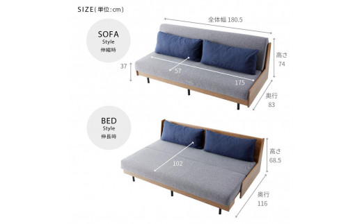 - ソファ ソファベッド 幅180 ペース 180ごろ寝ソファ<オークブラウン×ダークグレー>【モーブル】【大川家具】