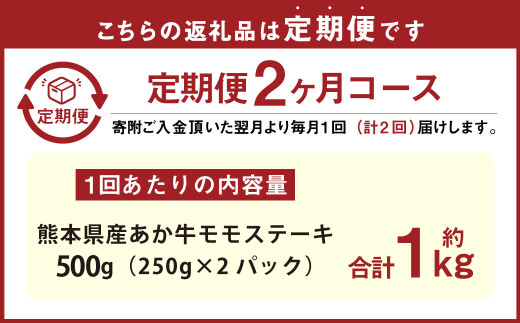 - 【2ヶ月定期便】 熊本県産 あか牛 モモ ステーキ 500g (250g×2パック) 合計1kg (250g×4パック)牛肉 赤牛 もも 肉 お肉 モモ肉 赤身 赤身肉 和牛 国産 冷凍
