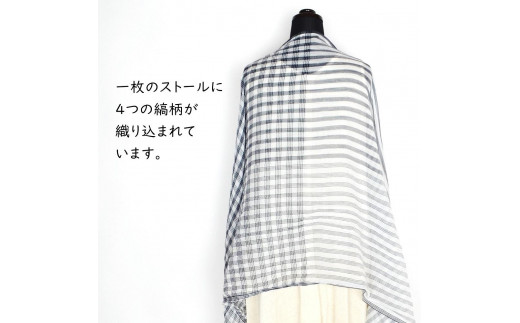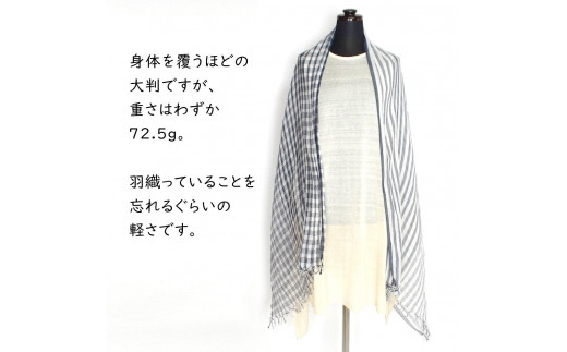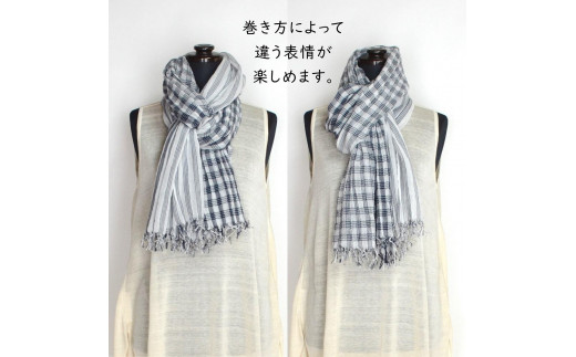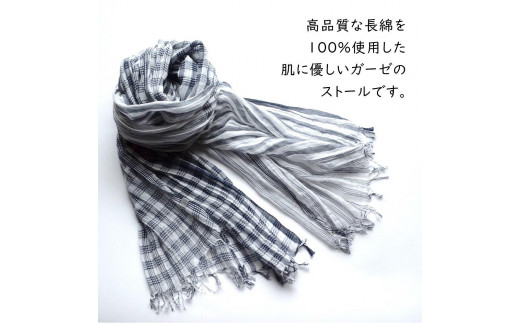 - 【harukii】変りギンガム長綿ガーゼストール (ネイビー)