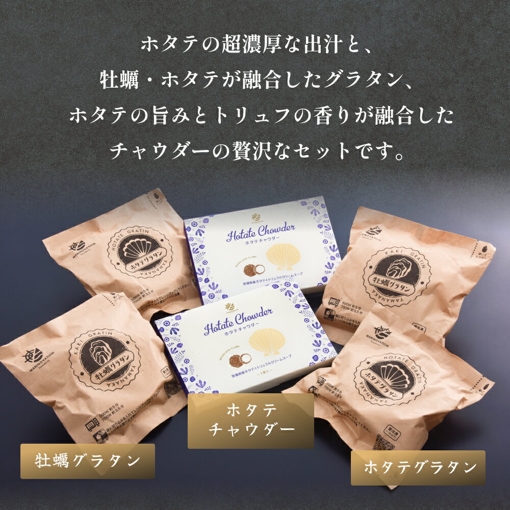 - 【ふるさと納税】グラタンとチャウダーセット 冷凍 食べ比べ 帆立 ほたて 牡蠣 かき カキ レンジ調理 簡単調理 惣菜 おつまみ おかず 海鮮 魚介 貝 オイスター