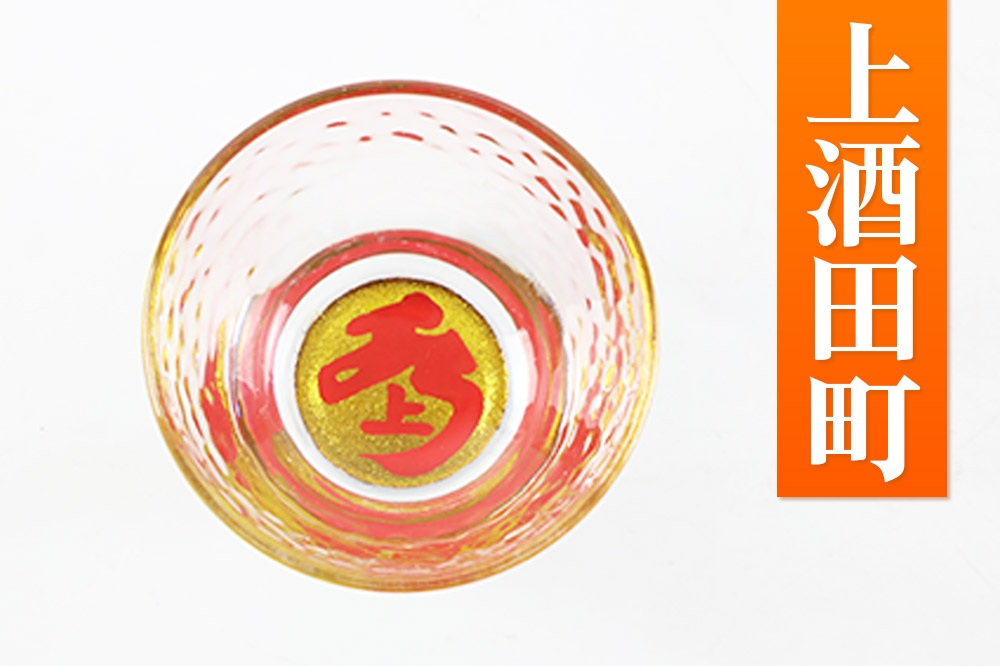 - 川連蒔絵ガラス 土崎港曳山まつり町紋ぐい呑(杉箱入り)【上酒田町】