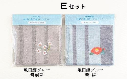 刺繍の亀田縞ハンカチーフ 2枚組Eセット【新潟の花木と草花刺繍】