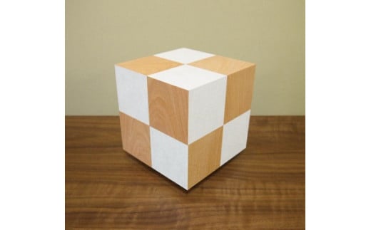 アクリキューブ行灯 Sサイズ 楮和紙無地(きなり) 桜ツキ板 市松