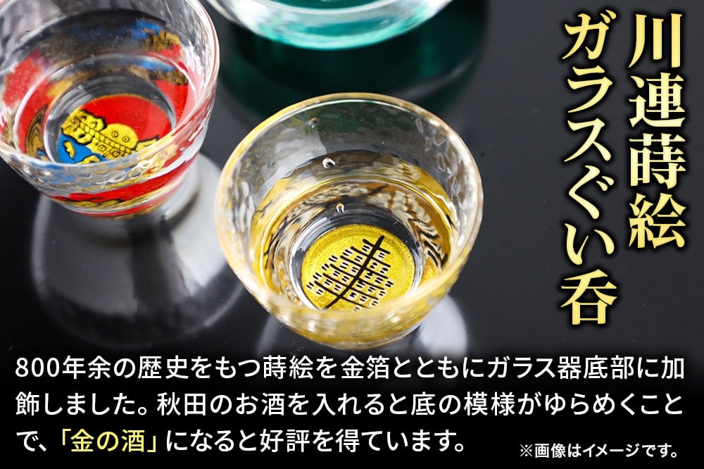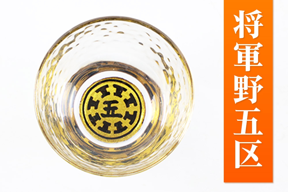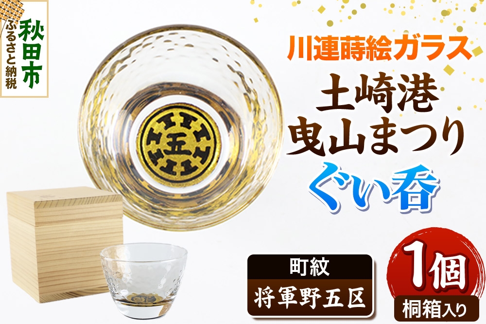 - 川連蒔絵ガラス 土崎港曳山まつり町紋ぐい呑(杉箱入り)【将軍野五区】