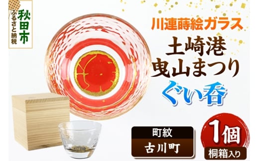 - 川連蒔絵ガラス 土崎港曳山まつり町紋ぐい呑(杉箱入り)【古川町】