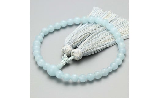 - 【京念珠】 アクアマリン 8mm玉 銀花カガリ房【土屋念珠店/女性用/レディース/念珠/略式/4033】