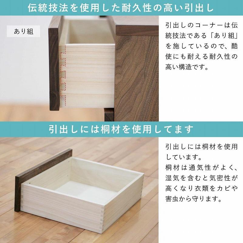 チェスト タンス 幅88 5段 奥行44 ウォールナット 無垢 桐たんす 箪笥 婚礼 衣類収納 大川家具 丸田木工 ココ