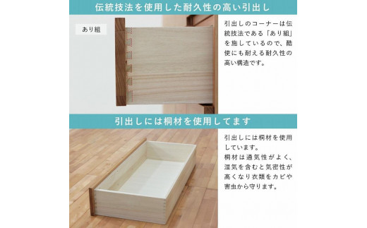 - チェスト タンス 幅88 4段 奥行44 アルダー 無垢 桐たんす 箪笥 婚礼 衣類収納 大川家具 丸田木工 ココ