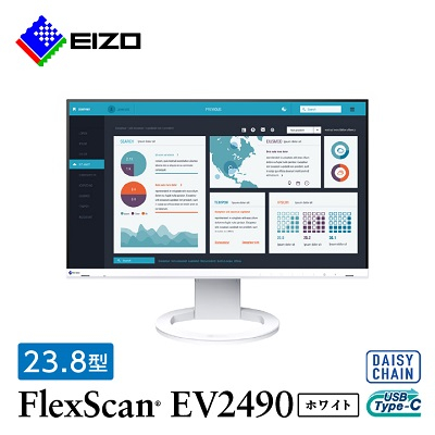 EIZO USB-C 入出力 ・ LAN搭載 23.8型 モニター FlexScan EV2490 ホワイト _ 液晶 液晶モニター パソコン pcモニター ゲーミングモニター USB Type-C デイジーチェーン 【1308106】