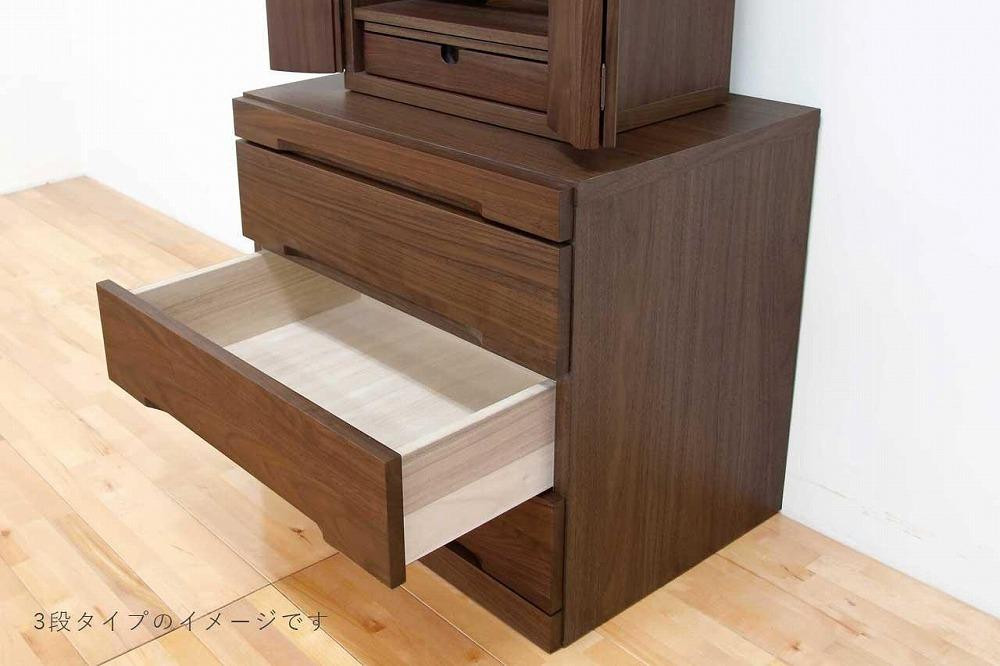 仏壇台 下台 チェスト 幅60-3段 スライドカウンター付き 引き出し収納「Nestle-ネッスル」ウォールナット材 大川家具 木製 無垢材【丸田木工】