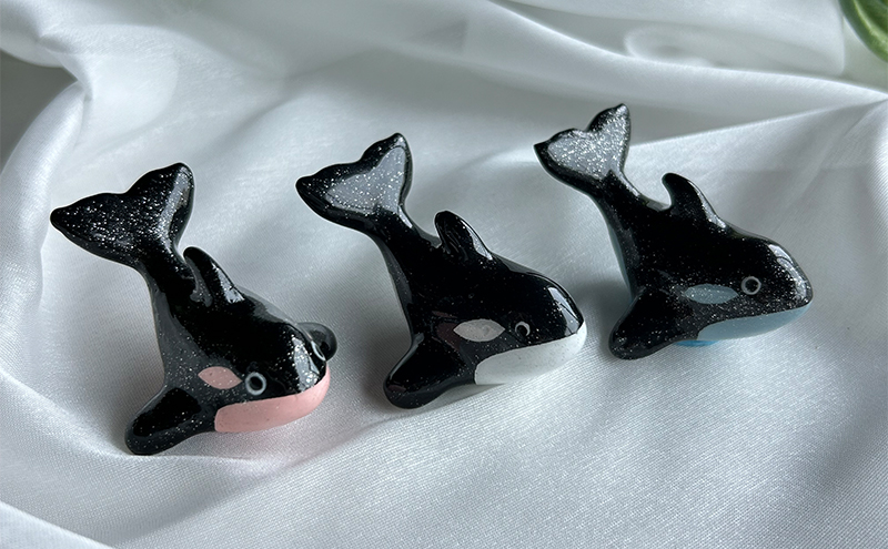 - 鋳物 ペーパーウエイト 愛知 ペーパーウエイト(シャチ3体セット)ブルー・ピンク・白 重し 【蟹江町】