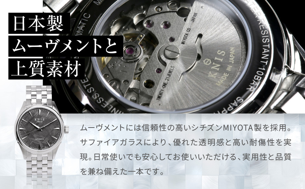 【KNIS KYOTO】メテオライト 日本製 自動巻き 腕時計 シルバー[ 京都発 腕時計 ブランド おしゃれ 人気 おすすめ ウォッチ 時計 高級 ファッション お取り寄せ 通販 ニス ふるさと納税 ] 261009_A-TE003