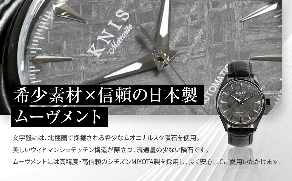 【KNIS KYOTO】メテオライト 日本製 自動巻き 腕時計 革ベルト レザー ブラック[ 京都発 腕時計 ブランド おしゃれ 人気 おすすめ ウォッチ 時計 高級 ファッション お取り寄せ 通販 ニス ふるさと納税 ] 261009_A-TE005