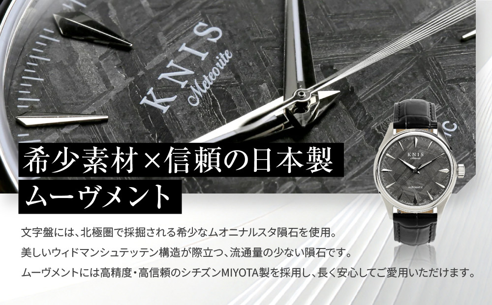 【KNIS KYOTO】メテオライト 日本製 自動巻き 腕時計 革ベルト レザー シルバー[ 京都発 腕時計 ブランド おしゃれ 人気 おすすめ ウォッチ 時計 高級 ファッション お取り寄せ 通販 ニス ふるさと納税 ] 261009_A-TE006