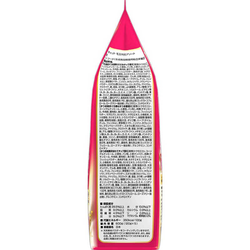 - 《ペットフード》日本ペットフード コンボ キャット 毛玉対応アソート 600g(120g×5袋入) ×12袋(ケース)