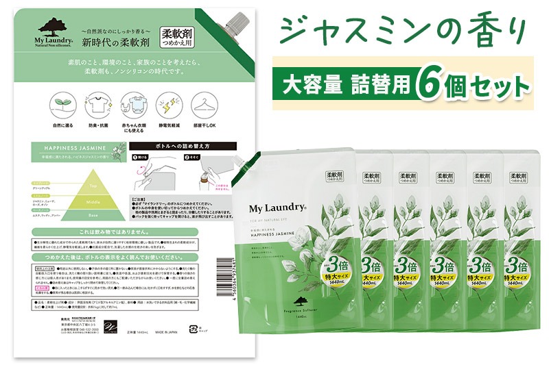 《定期便11ヶ月》ノンシリコン柔軟剤 マイランドリー 詰替用 大容量(1440ml×6個)【ジャスミンの香り】|10_spb-120111a