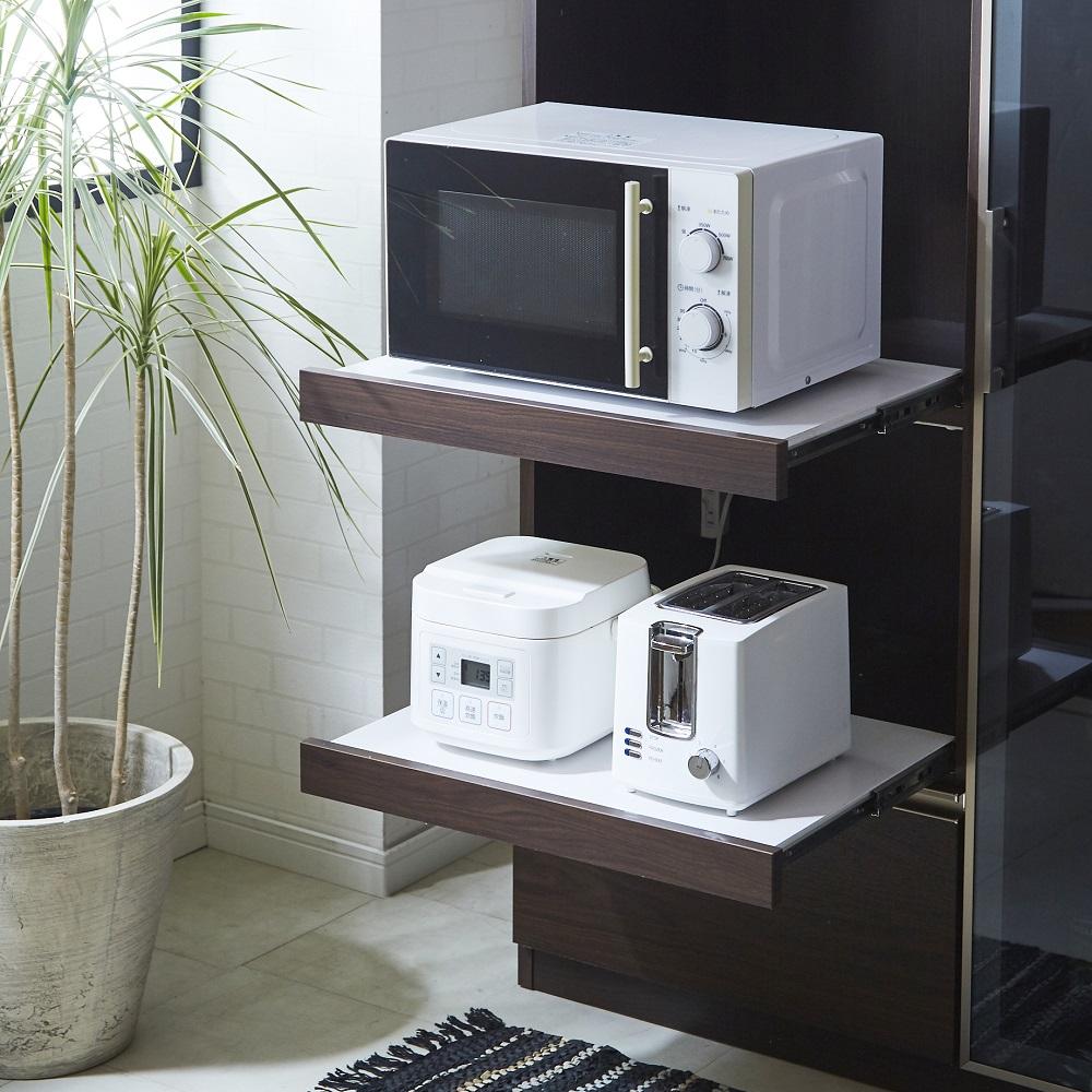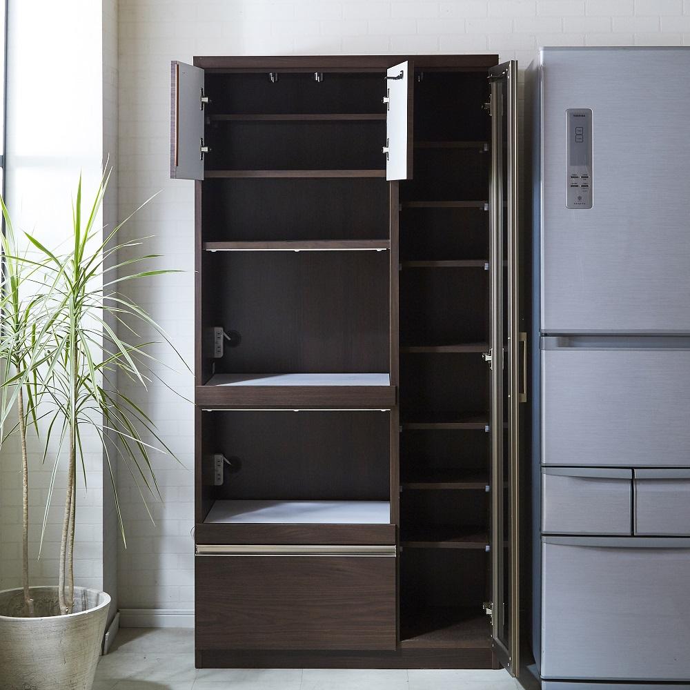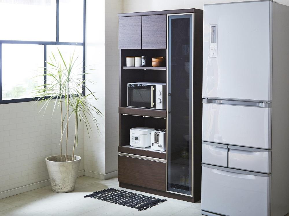 (ブラウン)【開梱設置】レビュー キッチンボード 幅90cm 耐震 食器棚 キッチン収納 ダイニングボード 完成品 スリム 大川家具 日本製