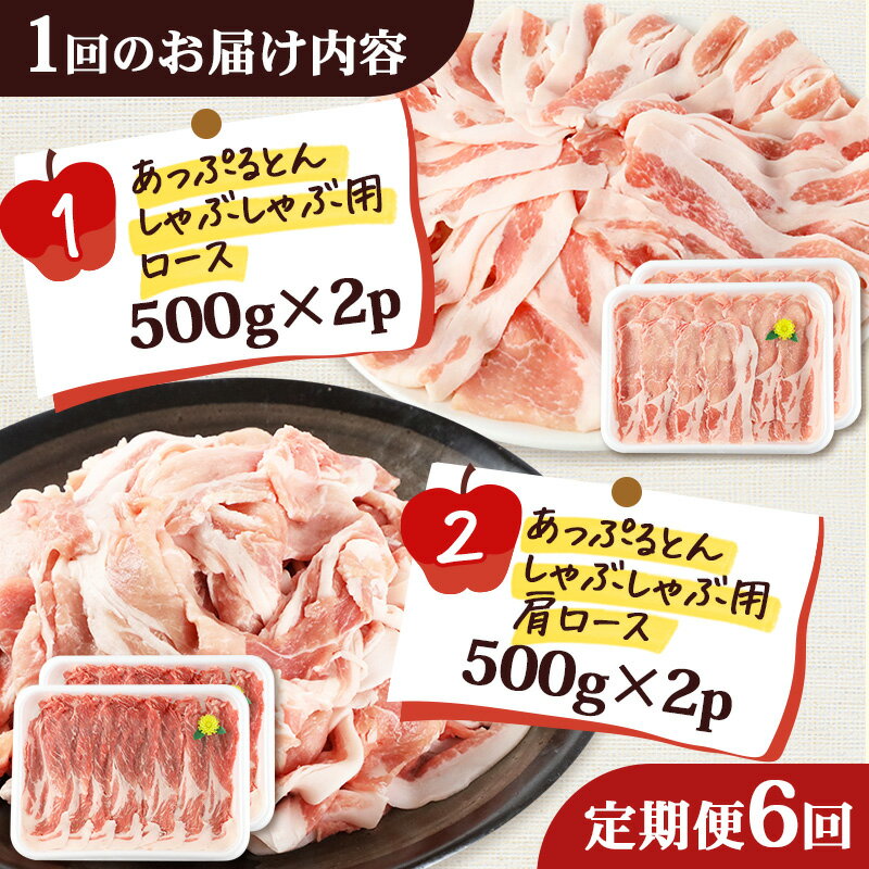 - 【ふるさと納税】《定期便6ヶ月》 あっぷるとん しゃぶしゃぶ用ロース&しゃぶしゃぶ用肩ロース詰合せ 合計約2kg(500g×各2パック) 豚肉