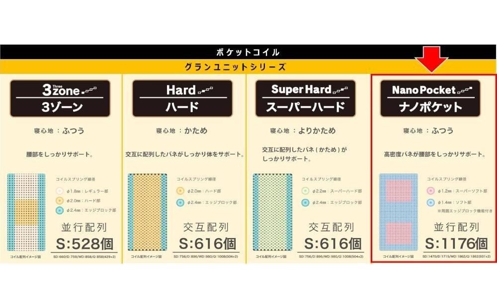 - セミダブルマットレス グランユニットナノポケット【グレー】