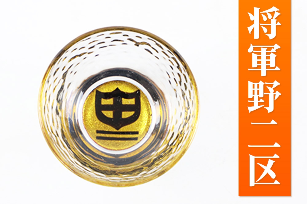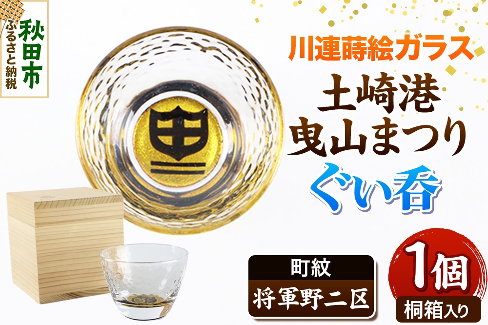 - 川連蒔絵ガラス 土崎港曳山まつり町紋ぐい呑(杉箱入り)【将軍野二区】