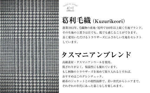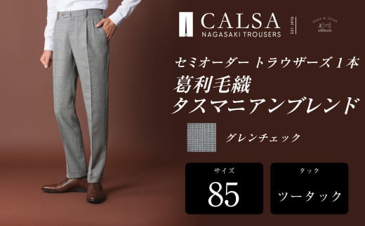 【ツータック/85】セミオーダー トラウザーズ 1本 (葛利毛織 タスマニアンブレンド/グレンチェック) / メンズ ファッション ボトムス パンツ ズボン 紳士服 CALSA 長崎県 長崎市