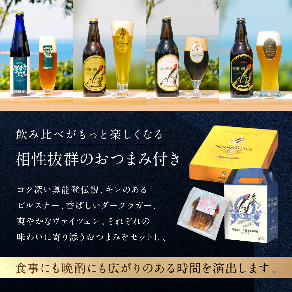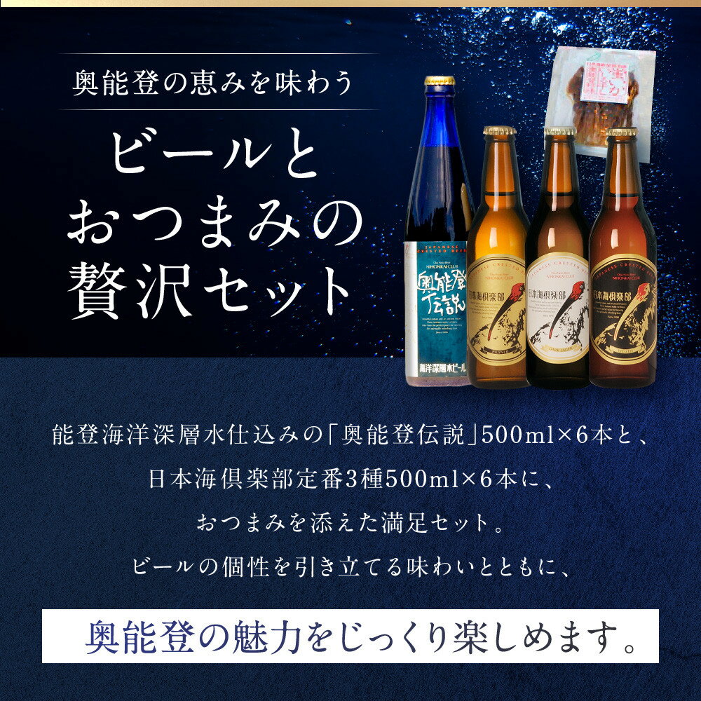 - 【ふるさと納税】【復興支援】奥能登ビール500ml×6本、奥能登伝説500ml×6本、おつまみ6セット | 石川県 能登町 石川 能登 ふるさと 納税 返礼 酒 お酒 ビール 地ビール 瓶ビール ギフト ビール 飲み比べ 特産品