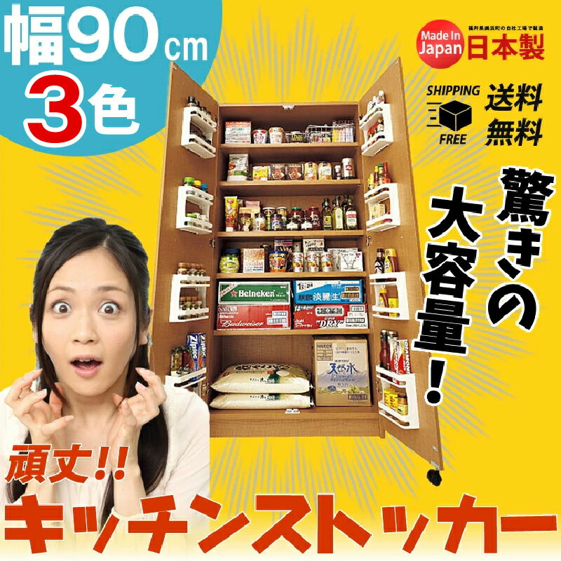 【ふるさと納税】頑丈キッチンストッカー 幅90cm GK-90≪寄附者様組み立て品≫【カラーをお選びください】3梱包【キッチン 台所 収納 ラック スリム ゴミ箱 食器棚 食料庫 食糧庫 棚 レンジ 台 パントリー 大容量 木製 収納庫 ペットボトル ビール 買い置き ストック 家具】