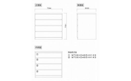 - クローゼット チェスト 幅80 4段 奥行55 ホワイト色 タンス 押入れ収納 衣類収納 桐 箪笥 大川家具 丸田木工 フィット