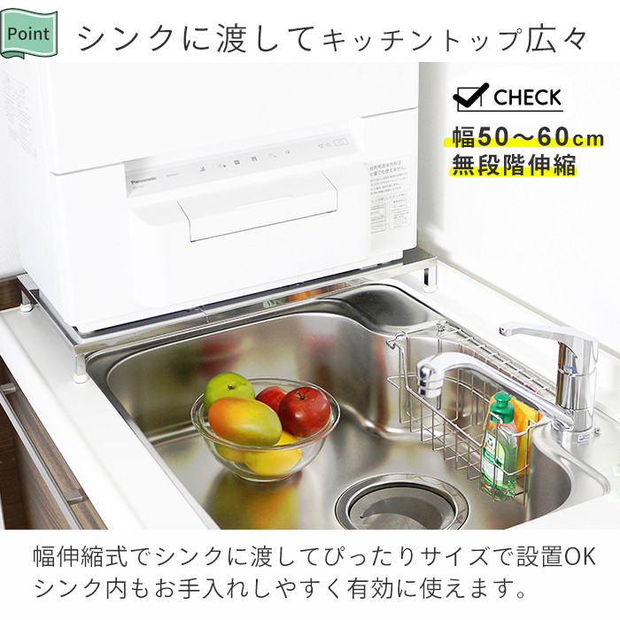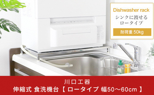 伸縮式食洗機台 【ロータイプ 幅 50~60cm 】 耐荷重50kg 食洗機台 食洗機置き台 シンクサイド キッチン用品 燕三条製 [川口工器] 【034S016】