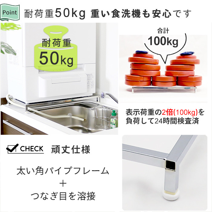 - 伸縮式食洗機台 【ロータイプ 幅 50~60cm 】 耐荷重50kg 食洗機台 食洗機置き台 シンクサイド キッチン用品 燕三条製 [川口工器] 【034S016】