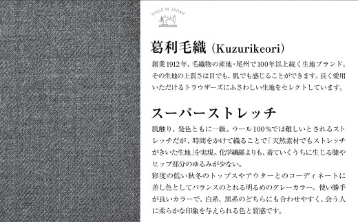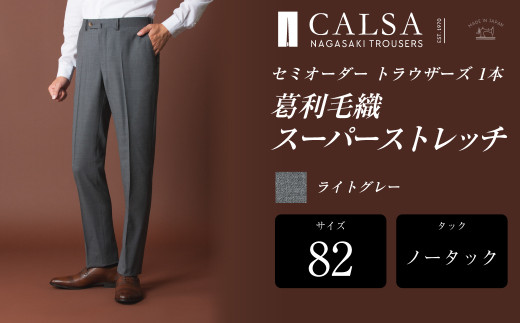 【ノータック/82】セミオーダー トラウザーズ 1本 (葛利毛織/スーパーストレッチ/ライトグレー) / メンズ ファッション ボトムス パンツ ズボン グレー 紳士服 長崎県 長崎市
