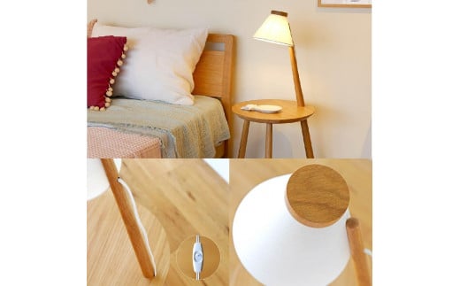 - 【10年保証】メリッジャーレ照明付きサイドテーブル ホワイトオーク