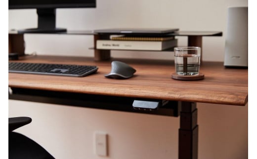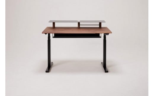 - 【幅120cm】【ウォールナット】【配線トレー付】【シェルフ付】 電動昇降デスク 無垢材 パソコンデスク WAAKstandingPro