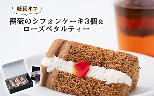 薔薇のシフォンケーキ3個+ローズペタルティー 薔薇が好きな方へ薔薇薔薇セット【1051936】