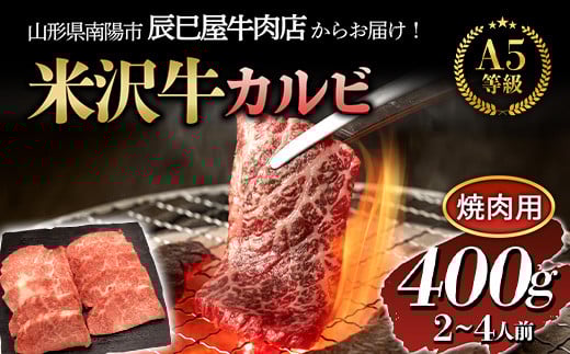 米沢牛 カルビ焼肉用 400g 『(有)辰巳屋牛肉店』 山形県 南陽市 [1246]