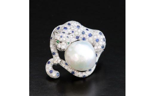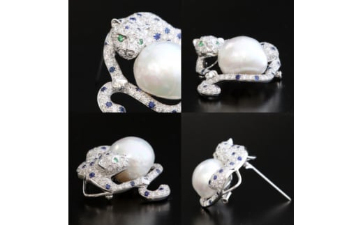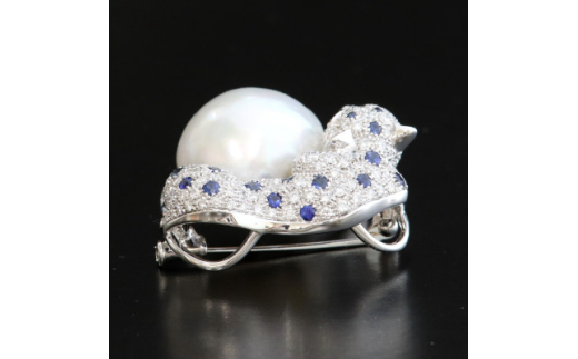 K18WG白蝶真珠バロック17mm”レオパード”ブローチペンダント<D2.47ct・S1.12ct>【1541866】