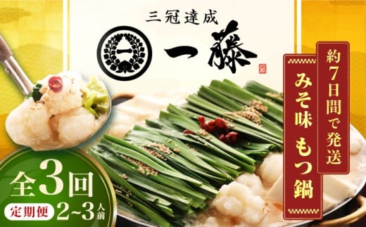 - 【3回定期便】【もつ鍋一藤】 国産黒毛和牛のもつ鍋味噌味 2~3人前 広川町 / Smallcompany株式会社 [AFCB002]