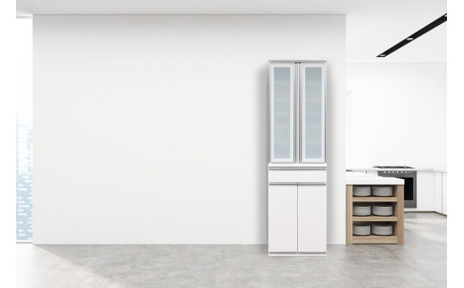 (ホワイト柾目)【開梱設置/受注製作】 ネオ ハイタイプ 食器棚 幅60cm 食器棚 完成品 ダイニングボード スリム 大川家具 キッチンボード