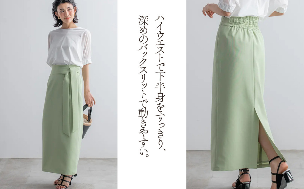 日本製 リネンライク ハイウエストタイトスカート【el Meray】