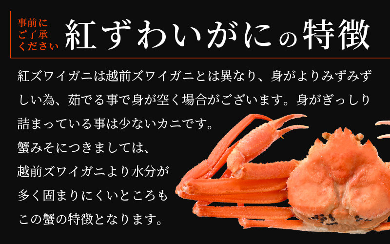 【訳あり】≪浜茹で≫越前産 紅ずわいがに 約700g × 4杯 食べ方しおり付【紅ズワイガニ カニ かに 蟹 姿 ボイル 冷蔵 福井県】【6月発送分】希望日指定不可 [e14-x002_06]
